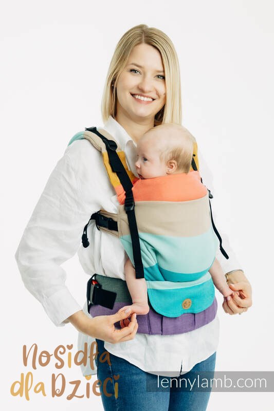 Lenny UpGrade PRO to nowa, ulepszona wersja popularnego nosidełka klamrowego od Lenny Lamb. To model regulowany, który rośnie razem z noszonym dzieckiem od urodzenia do około 3 lat (rozmiary ubranek 56/62 do 98/104)! Ma intuicyjną regulację wysokości (taśmy), otulający pas biodrowy i dobrze wypełnione pasy naramienne zapewniające rodzicowi wygodę, a noszonemu maluszkowi bezpieczeństwo i komfortową pozycję. Kapturek zabezpiecza główkę śpiącego dziecka, a kieszonka na pasie biodrowym pomieści niezbędne drobiazgi.